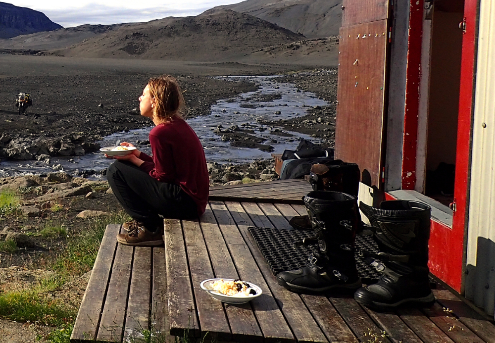 Parfois les menus sont des plus originaux comme ce jour-là dans un refuge où Rachel nous a concocté un mélange de riz, de pruneaux, de thon et de compote à boire à la pomme, le tout agrémenté de noix séchées. Tout cela pour un petit déjeuner en terrasse s’il vous plait!
