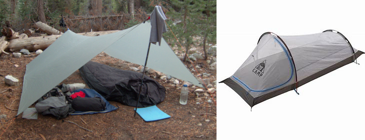 Si vous optez pour une tente sans abside, la solution en cas de mauvais temps est l’utilisation d’un tarp annexe, mais cela rajoute évidement du poids.