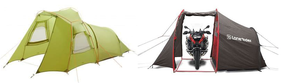 Avec l’âge, pouvoir se tenir debout sous sa tente peut devenir indispensable. Dans ce cas-là il faudra trouver le bon compromis entre habitabilité et encombrement/poids. Pour une utilisation en moto, les modèles comme les Vaude Chapel (à gauche) et Lone Rider moto tent (à droite) peuvent être une solution. Dans ce cas, pensez à la prise au vent.