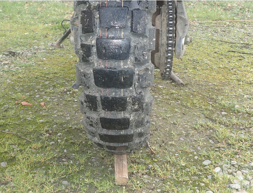 A cela je rajoute des démontes pneus et une cale en bois à la bonne dimension pour démonter et remonter mon pneu arrière sans trop me fatiguer.