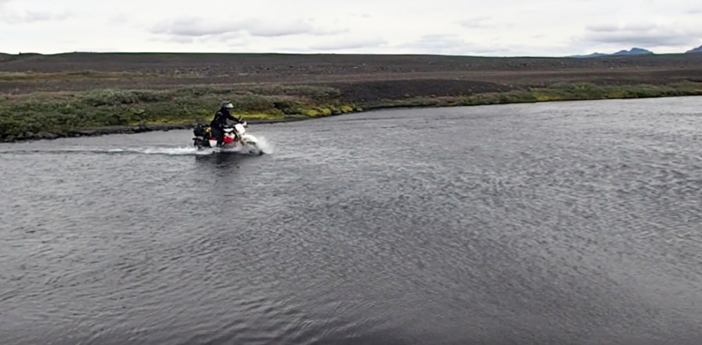 La profondeur et la nature du sol sont facile à apprécier, le plus difficile à évaluer est l’effet que le courant aura sur la moto.