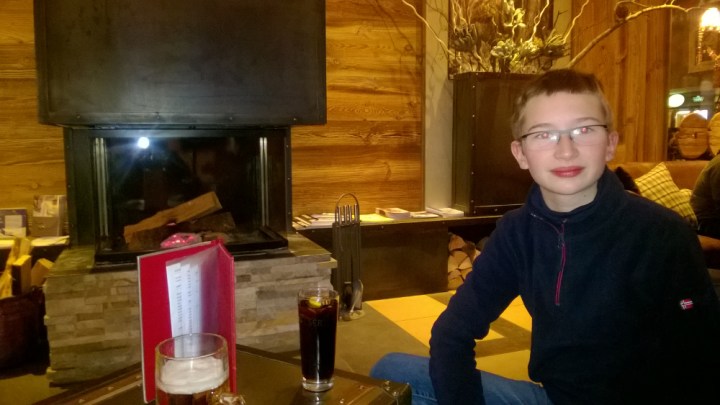 Après une bonne douche et s’être changé, nous descendons prendre l’apéritif dans un salon cosi au coin du feu.