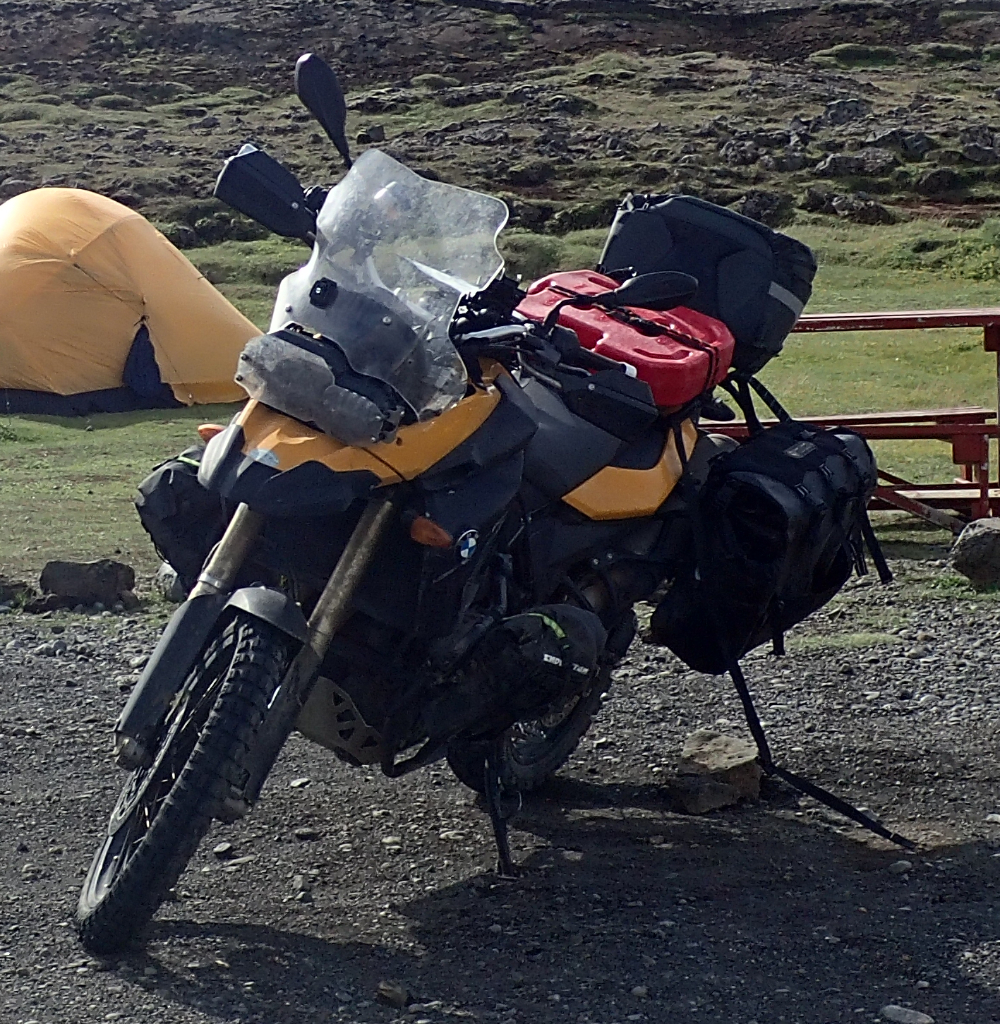 Pourquoi transporter un sac de 90L pour seulement une tente et un fauteuil? Effectivement, vu sous cet angle cela ne parait pas judicieux. Mais il y a une raison. En voyage, je ne sais jamais ce qui peut arriver. Je peux être amené à laisser ma moto pour plusieurs jours (comme lors de mon dernier voyage en Islande) et dans ce cas là, le sac polochon devient mon seul bagage. Tout ce dont j’ai besoin pour quelques jours d’autonomie y rentre. La large sangle de portage prend alors tout son sens, sinon pour un usage exclusivement moto elle n’a aucune utilité.
