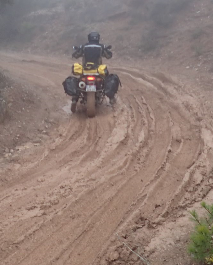 J’ai voulu essayé une voie intermédiaire qui consiste à mettre un pneu mixte à l’arrière et un pneu plus TT à l’avant qui s’use moins vite. Mon dévolu c’est porté pour le mitas E07 (50% off road avec bande de roulement) à l’arrière et le E10 (70% off road) à l’avant. J’ai pris les versions Dakar qui sont renforcées, l’objectif étant de voyager sur la piste. Après en avoir discuté avec mon compagnon d’aventure sur sa 990 ADV qui a trouvé l’idée intéressante, il a décidé de monter un K60 à l’arrière et un TKC80 à l’avant. Du coup, je pourrais faire un petit comparatif même si les motos et les styles de conduites sont différents.