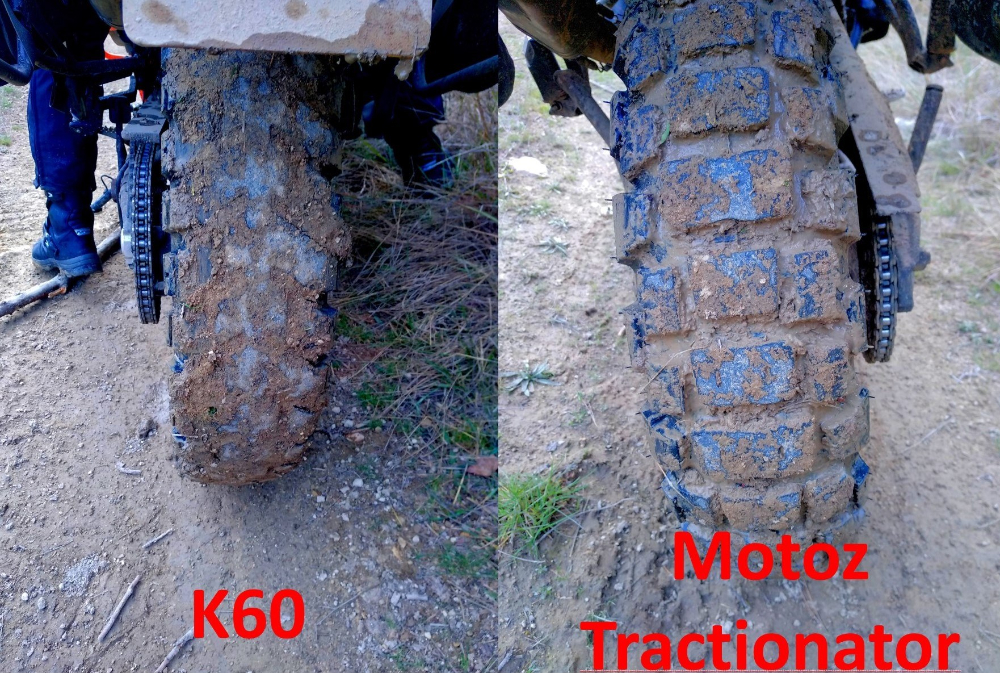 Par contre en tout terrain ils expriment pleinement leur potentiel, notamment en terrain gras, dans les pierriers et autres, ils tractent tout le temps et là pour le coup, je suis bien plus en confiance! A gauche un pneu 50% off road, à droite 75% à la sortie du même bourbier. Ce sont des pneus à réserver pour des roads trip à très forte teneur en off road dans des terrains difficiles.