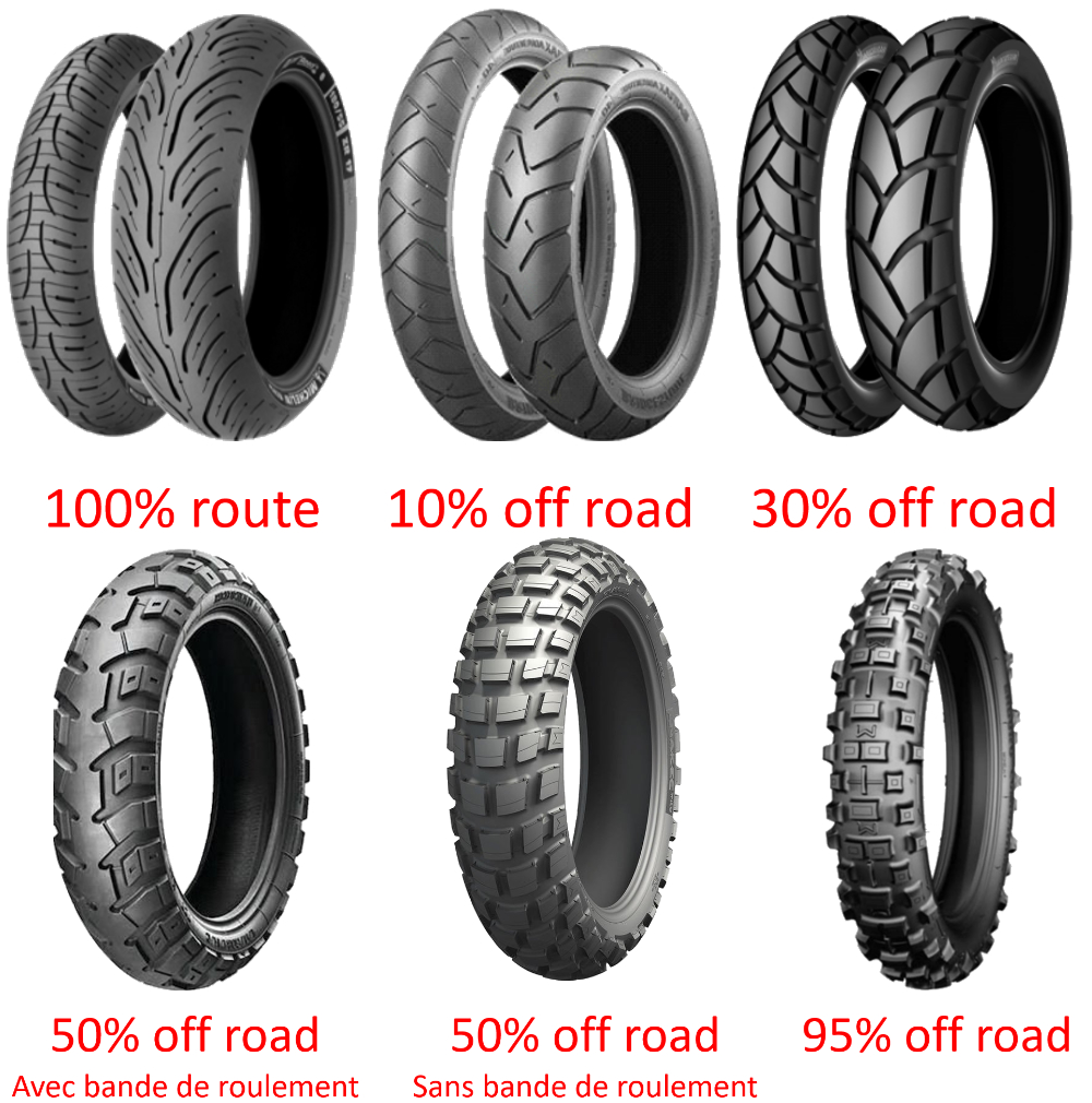 La technologie a beaucoup évoluée ces dernières années. Il y a peu, une moto super sport développait 100 ch. Aujourd’hui, un maxi trail sportif fleurte avec les 170 ch. Les manufacturiers de pneus se sont adaptés et ont développés des gammes de produit dit off road dont certains des indices de vitesses H et V autorisent des vitesses supérieures à 200 km/h.