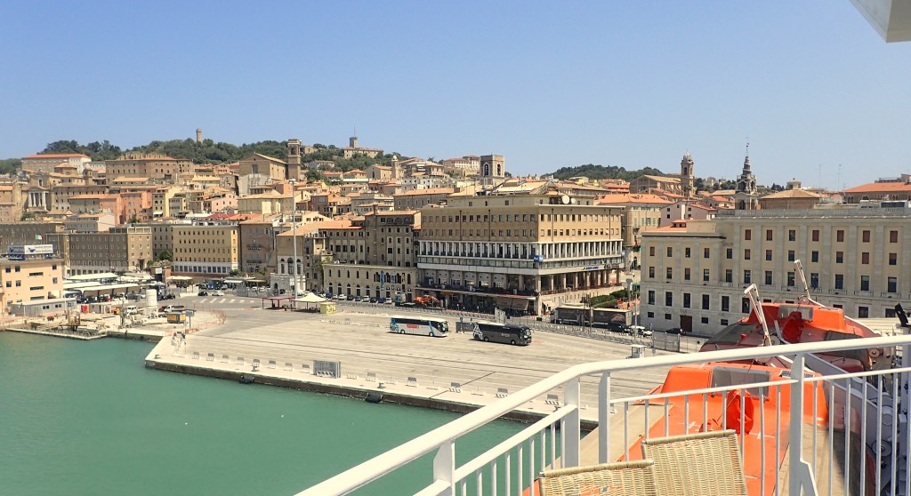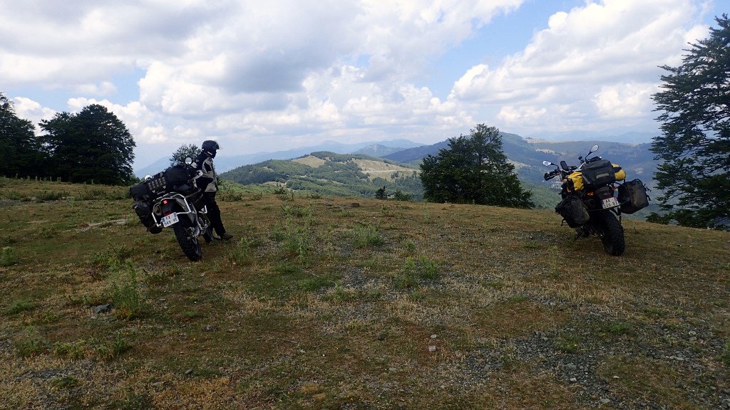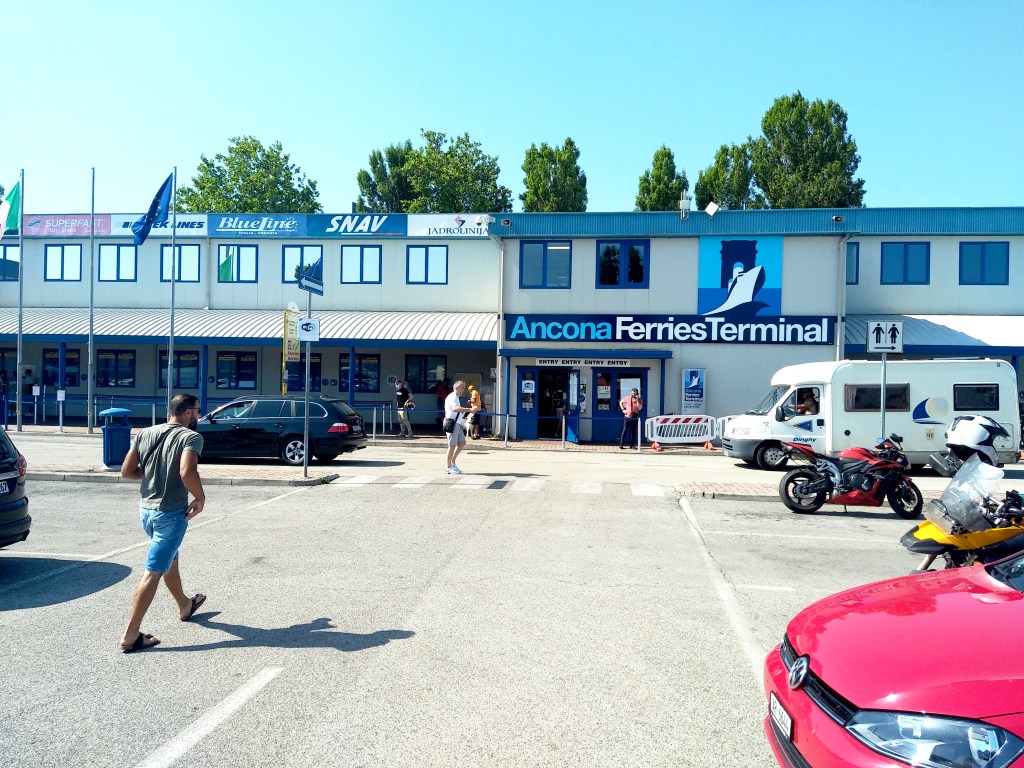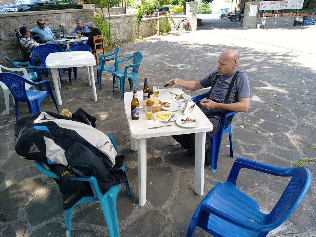 Nous décompressons un peu tout en dinant. Puis vient le moment de prévoir le programme du lendemain. Arnaud s’est bien amusé sur les petites routes mais a vécu comme un calvaire l’autoroute essentiellement à cause des vibrations de sa 701. Il est plutôt morose mais nous n’avons pas trop le choix. Il reste un peu moins de 400 km avant Ancône et attraper le ferry pour Igoumenitsa en Grèce.