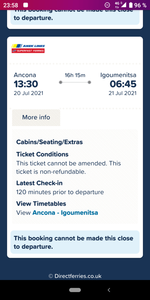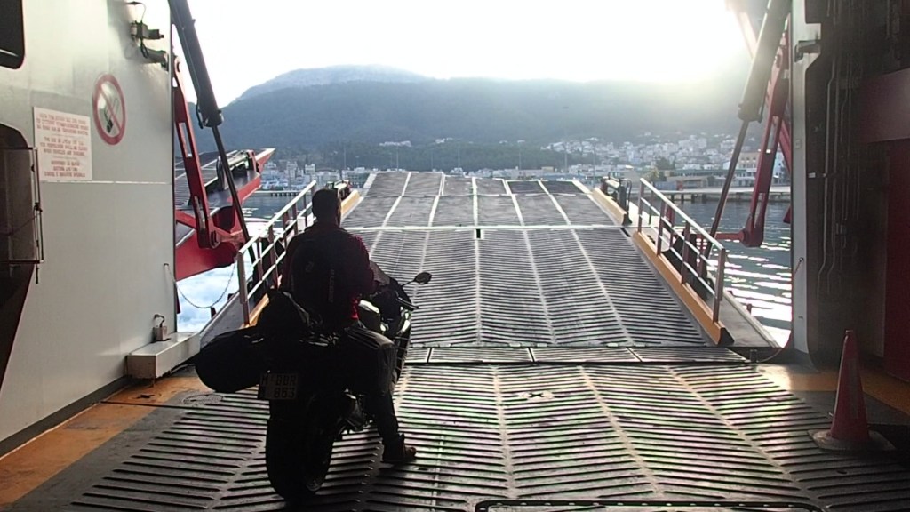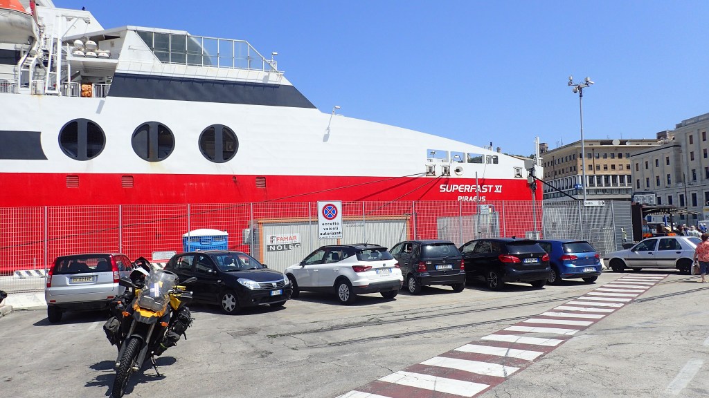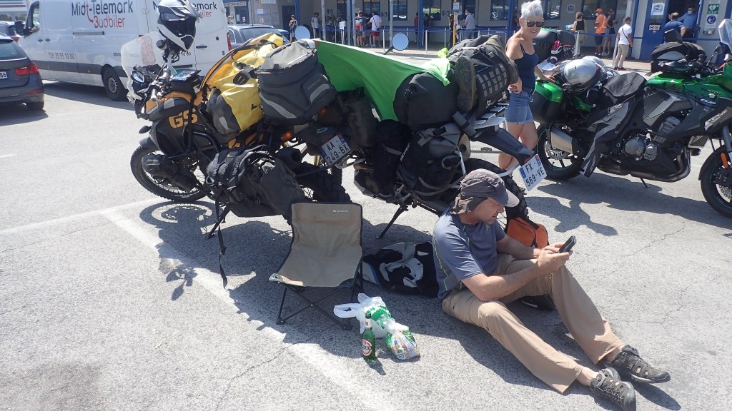 C’est Arnaud qui propose de s’y coller. Il récupère mes papiers et part faire la queue pour les réservations. Une heure plus tard, il revient tout sourire, les précieux sésames en poche. Nous n’avions rien réservé, comme à notre habitude, mais pour deux motos et deux passagers sans cabines, il y a généralement de la place.