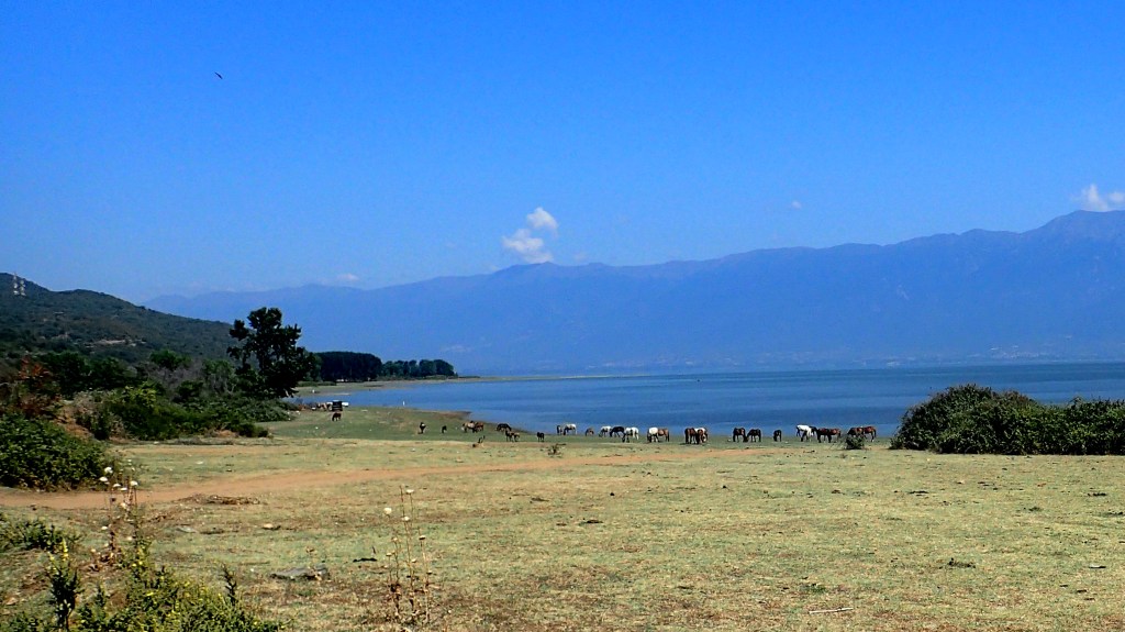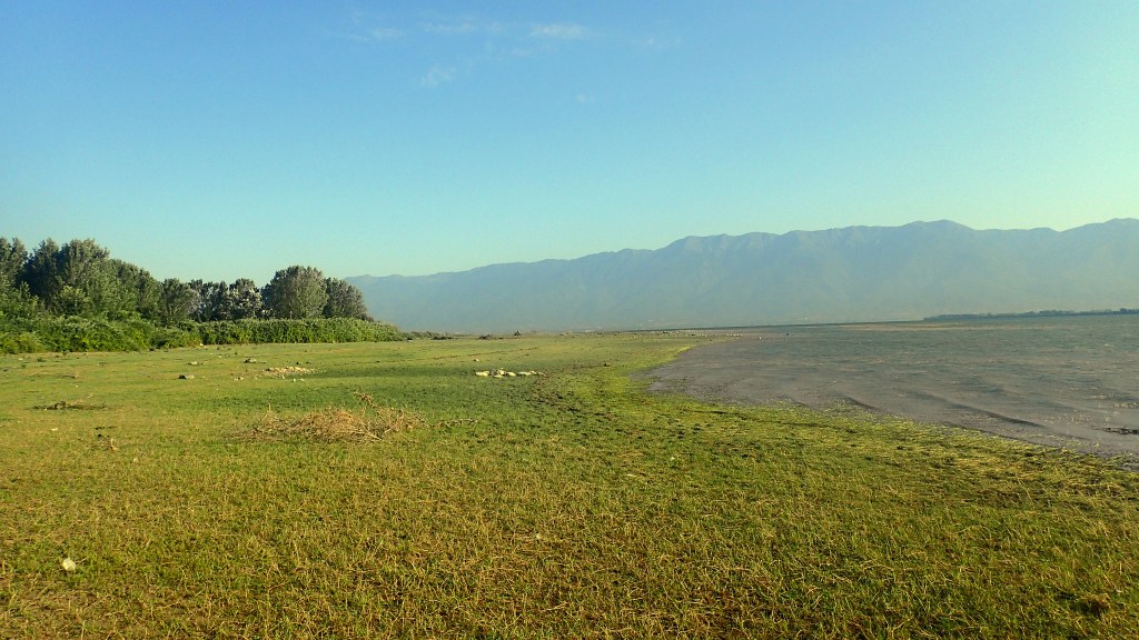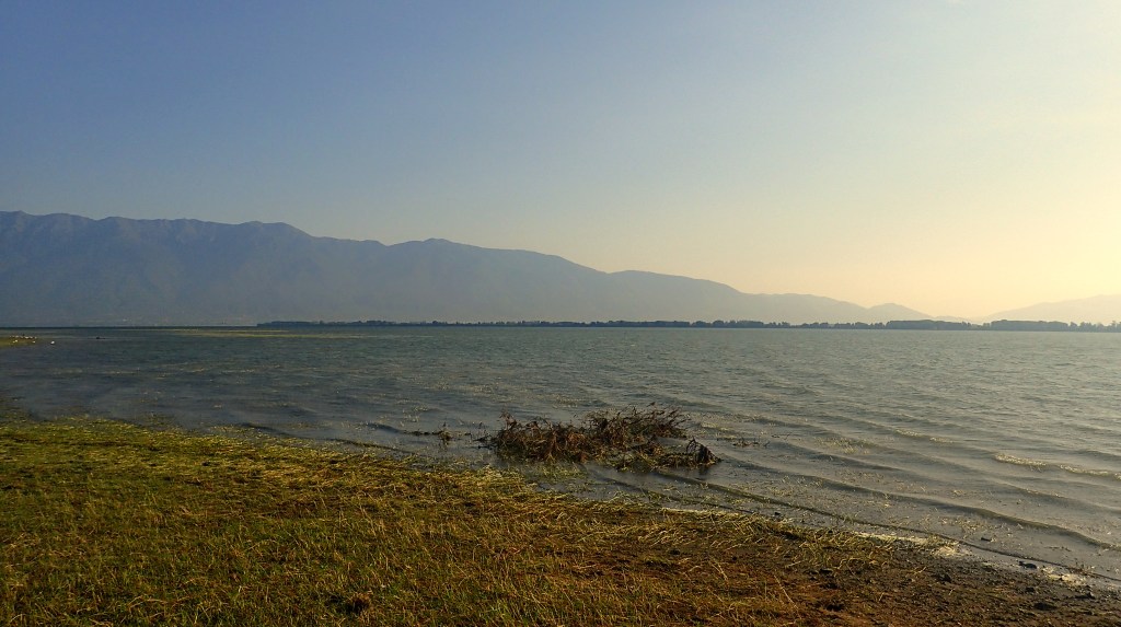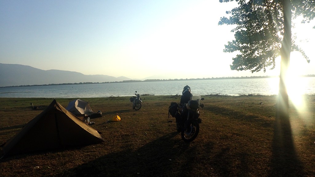 Les kilomètres défilent et l’heure tourne. Il est 20h passé et il nous faut trouver un coin où bivouaquer. Ce sera sur la rive sud du lac Kerkini que nous installerons notre campement. Le sol est jonché d’empreintes d’animaux, mais j’espère que la nuit sera néanmoins paisible !