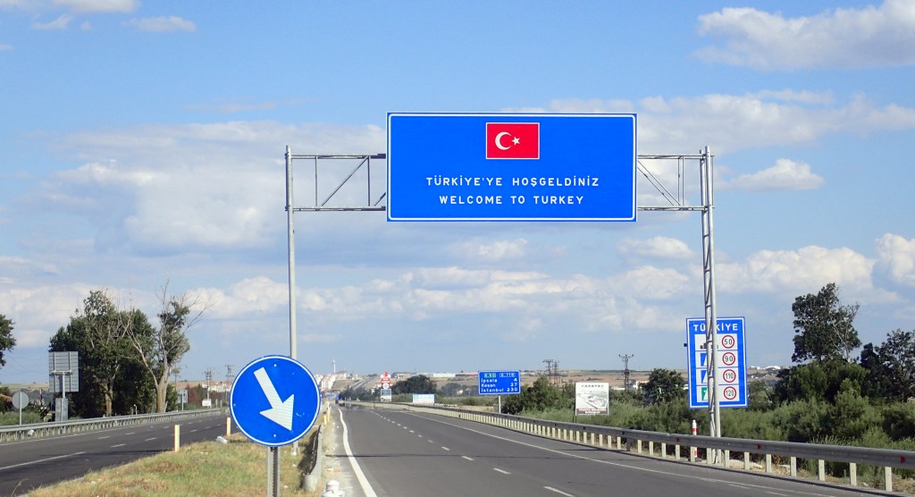 Nous tuerons le temps en discutant avec des Turcs français, et, finalement, l’attente ne sera pas trop longue. Plusieurs guichets à passer, sourire à la caméra qui nous filme, je suppose, pour pouvoir faire de la reconnaissance faciale si besoin est. Les plaques des motos sont aussi filmées. Le message est bien reçu, nous nous tiendrons à carreaux !