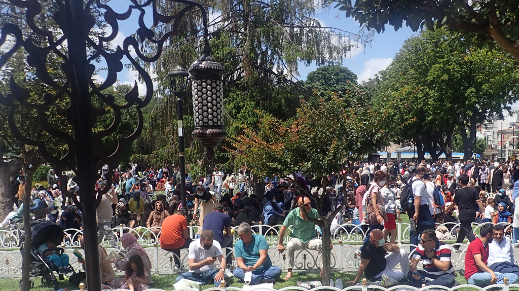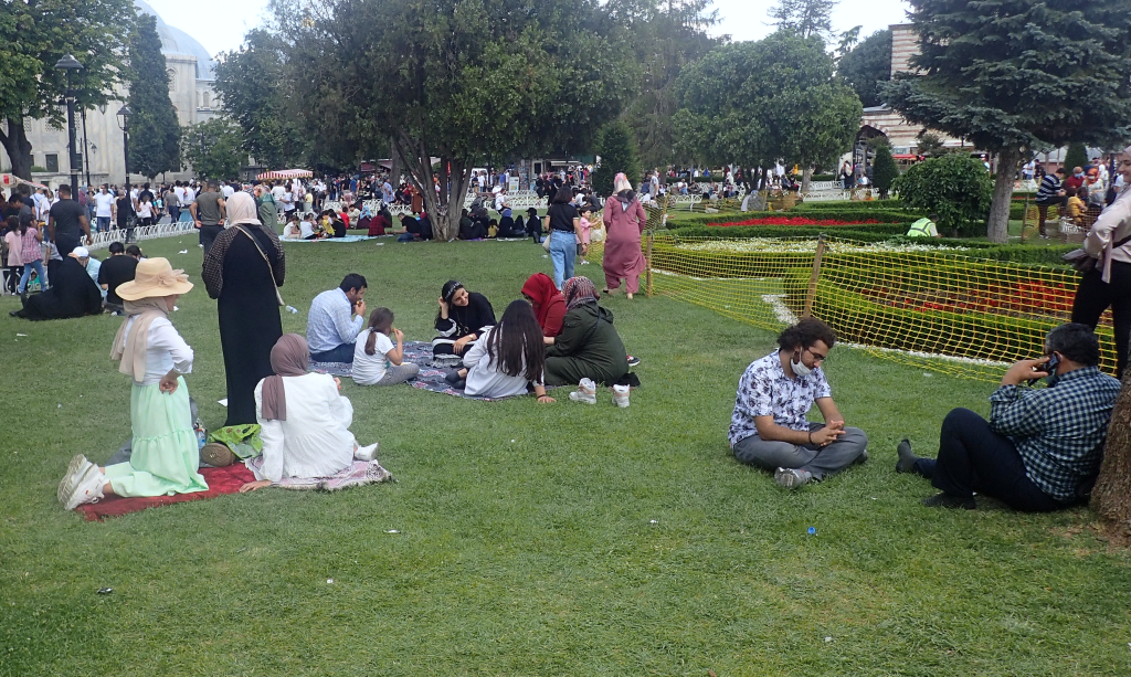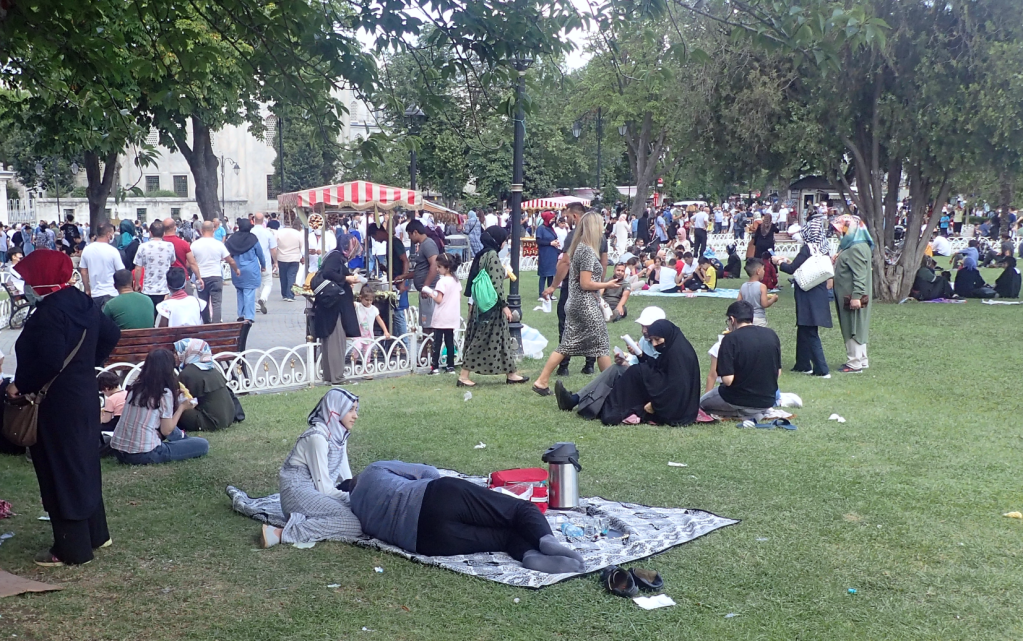 Je n’avais jamais vu cela auparavant. Je me renseigne et, au final, tout s’explique. C’est l’Aïd, une importante fête religieuse, une sorte de Paques juive ou chrétienne. Les Turcs ont à cette occasion quatre jours fériés et, de plus, nous sommes vendredi, jour de la prière. Le mystère élucidé, j’apprends qu’il faudra attendre 14h30, la fin de l’office, pour visiter Ayasofya et que, par conséquent, le grand bazar est fermé.