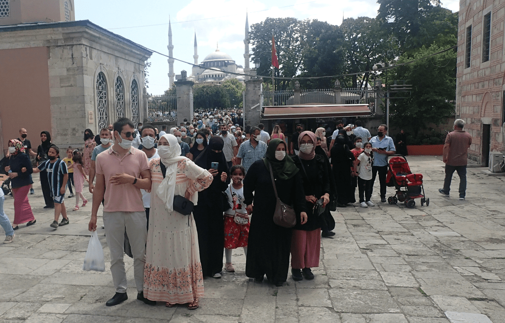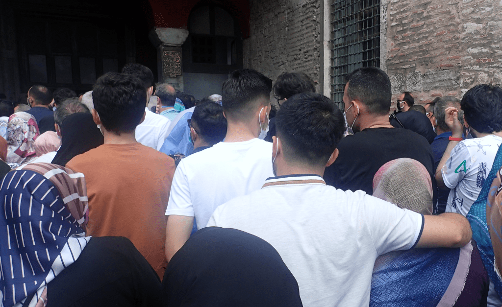 Nous nous mêlons à la foule. La progression est lente. Je suis littéralement impressionné, subjugué. Je l’avais déjà visité à l’époque, mais jamais dans ces conditions si particulières. Je réalise alors que nous semblons être les seuls étrangers. En cette année de pandémie internationale, nombre de gens sont resté en vacances dans leur pays d’origine. En tout et pour tout, durant tout notre périple, nous n’aurons croisé comme étranger, qu’une seule moto et deux 4×4. Autrement dit, tous ces gens doivent être dans l’immense majorité Turcs. Peu sont là pour prier, la majorité s’adonnant au tourisme, appareil photo en main.