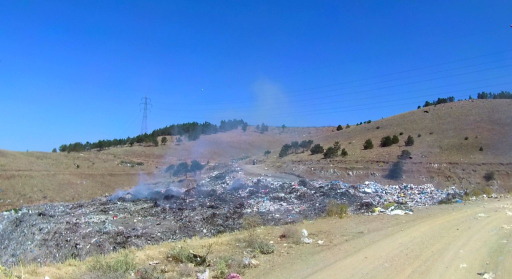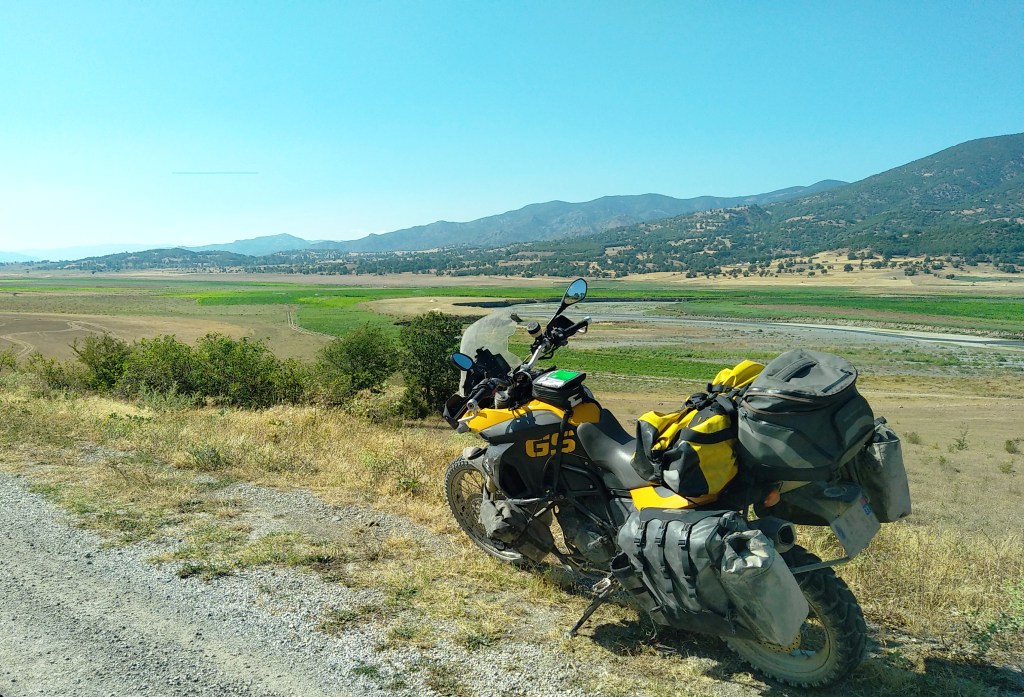 Le lendemain matin nous reprenons les motos avec pour objectif, l’Albanie. Arnaud veut tracer et nous traversons la Macédoine par les grosses routes en perpétuels travaux. Journée sans intérêt et pourtant, connaissant ce pays, je sais qu’il est particulièrement chaleureux et intéressant. Mais pas aujourd’hui. Nous nous contenterons de rouler, avec, pour seule distraction funeste, les colonnes de fumée des feux de forêt ravageant les Balkans.