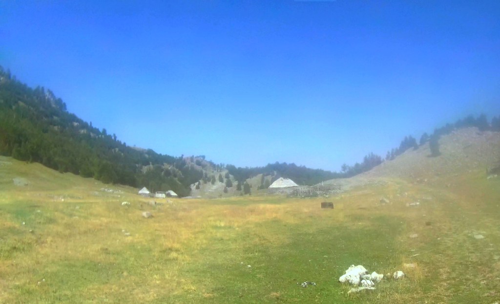 Sans réseau et n’ayant pas téléchargé l’albanais, la barrière de la langue est pesante. Nous arrivons néanmoins à communiquer à minima. Ils nous proposent du lait. Je décline l’offre mais Arnaud accepte. Un des hommes se lève, s’éloigne et revient un moment plus tard, une carafe de lait à la main. Il est encore tout chaud, probablement trait il y peu de temps.
